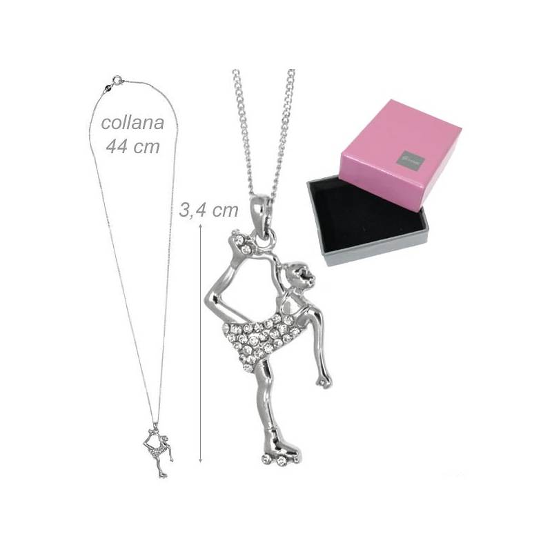 Collana a catenina in metallo con pendente pattinatrice con strass.
